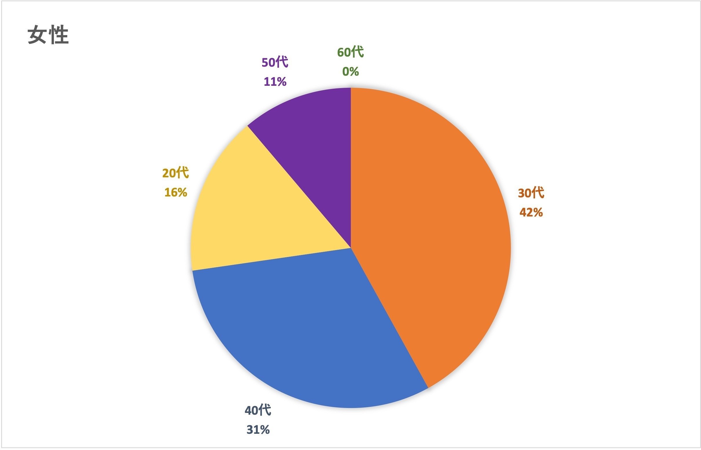 女性は、30代、40代、が多く、その次に20代、50代の順です。